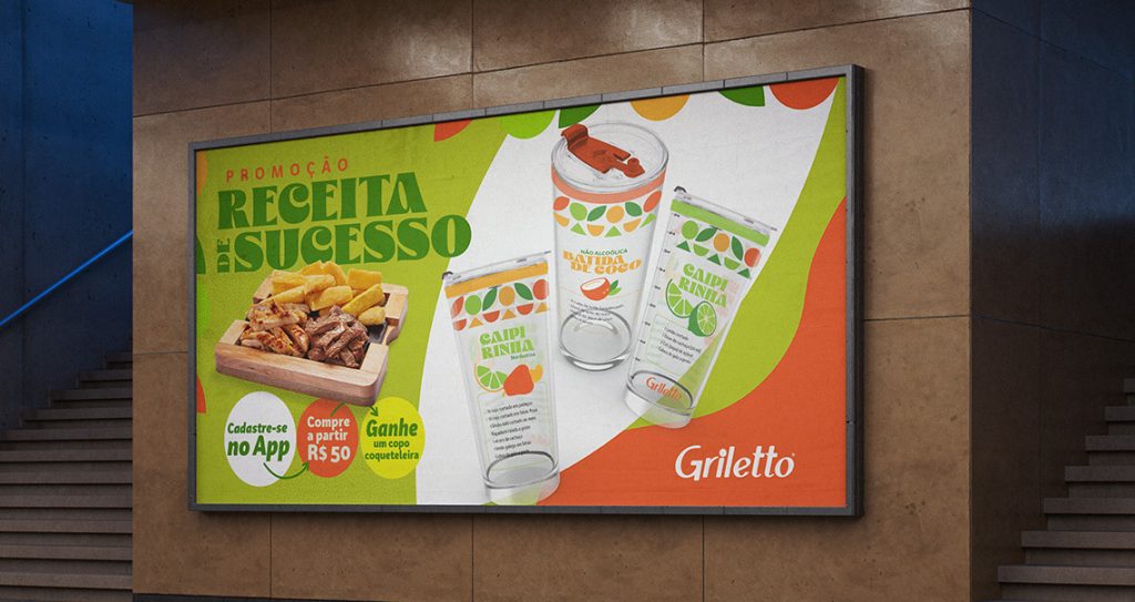 Uma promoção irresistível, como os pratos do Griletto: o cliente se cadastrava no app Mais Griletto e comprando um prato mais bebida, ganhava na hora um Copo Coqueteleira personalizado com receitas incríveis. A adesão à promoção foi tão grande que os mais de 12.000 copos esgotaram em apenas 20 dias.